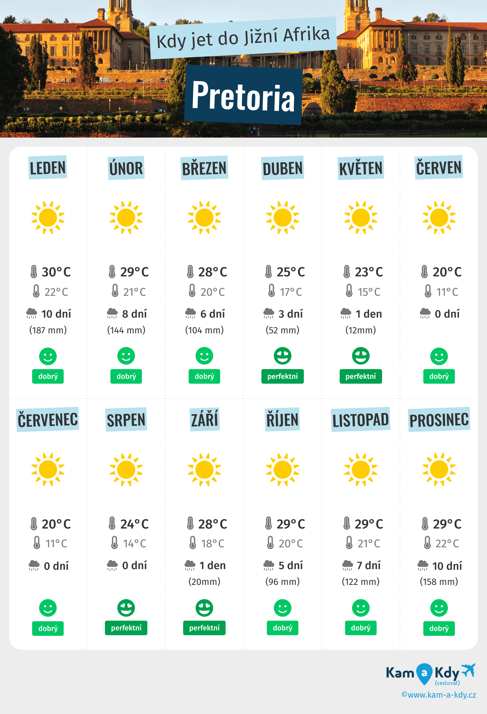 Měsíce s nízkou návštěvností jsou: Duben a Září. - Hlavní sezóna v Pretoria
