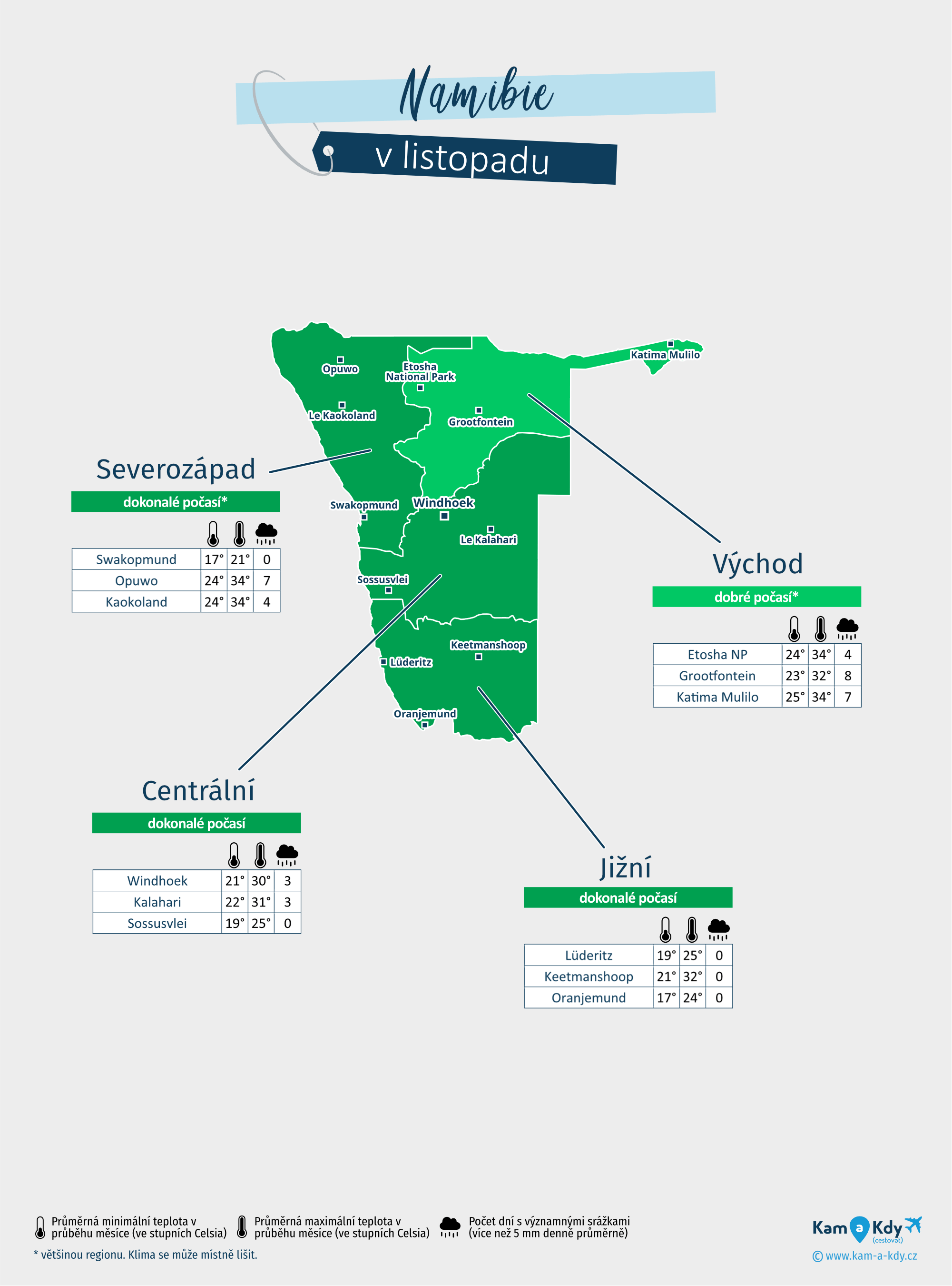 Kam jet v Namibii v listopadu podle předpovědi počasí?