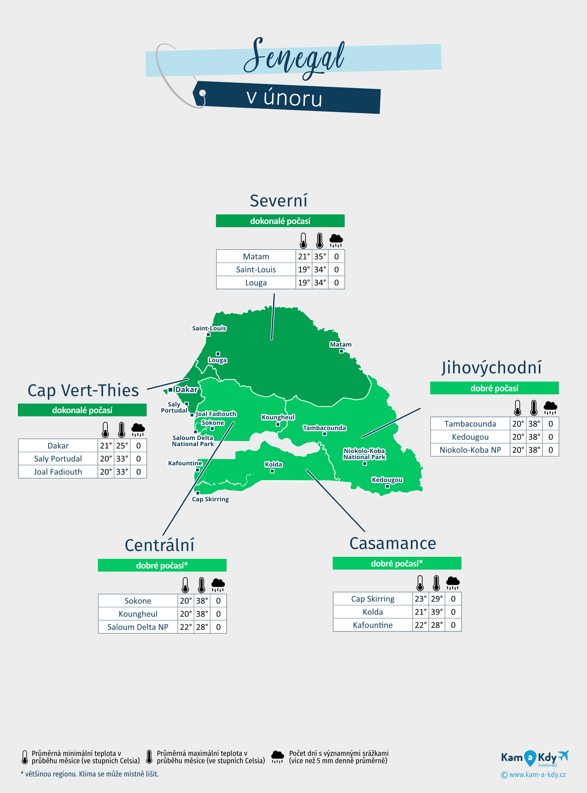 Kam jet v Senegalu v únoru podle předpovědi počasí?