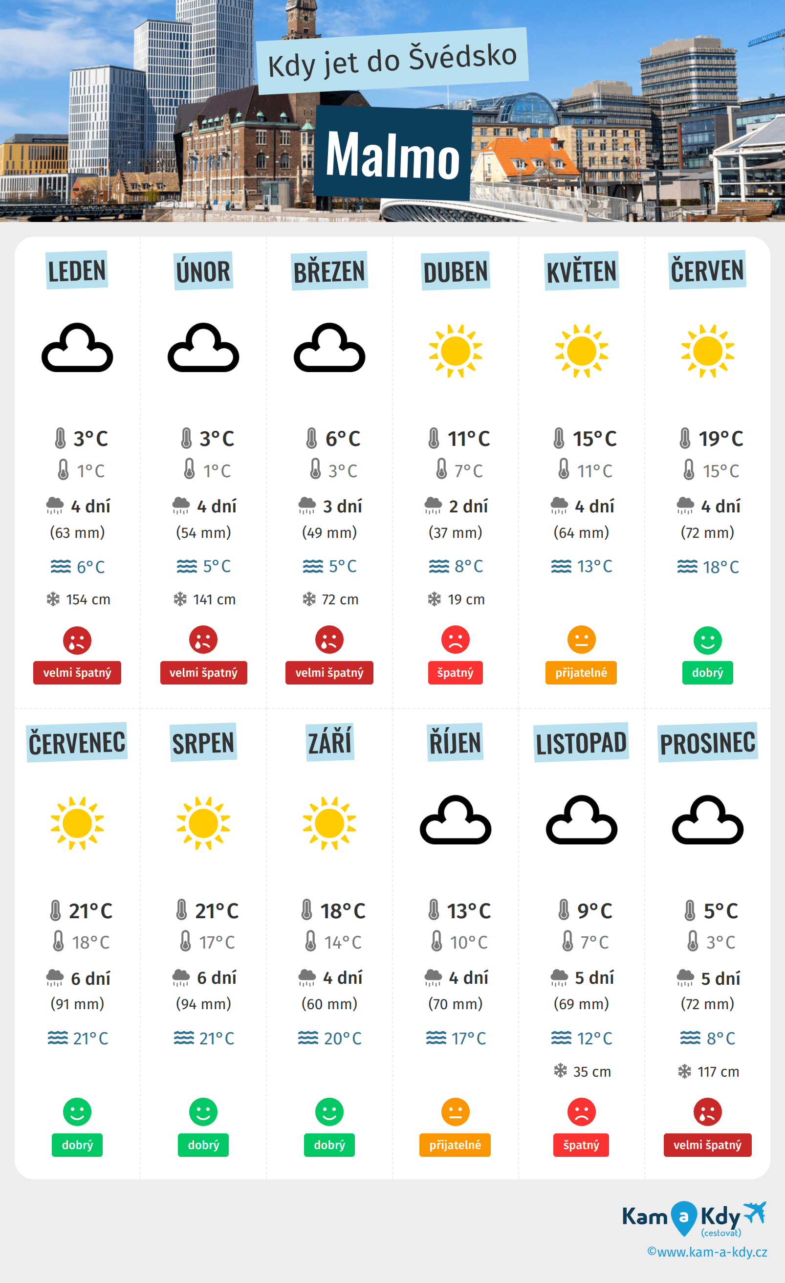 Podrobnosti o počasí v Malmo měsíc po měsíci