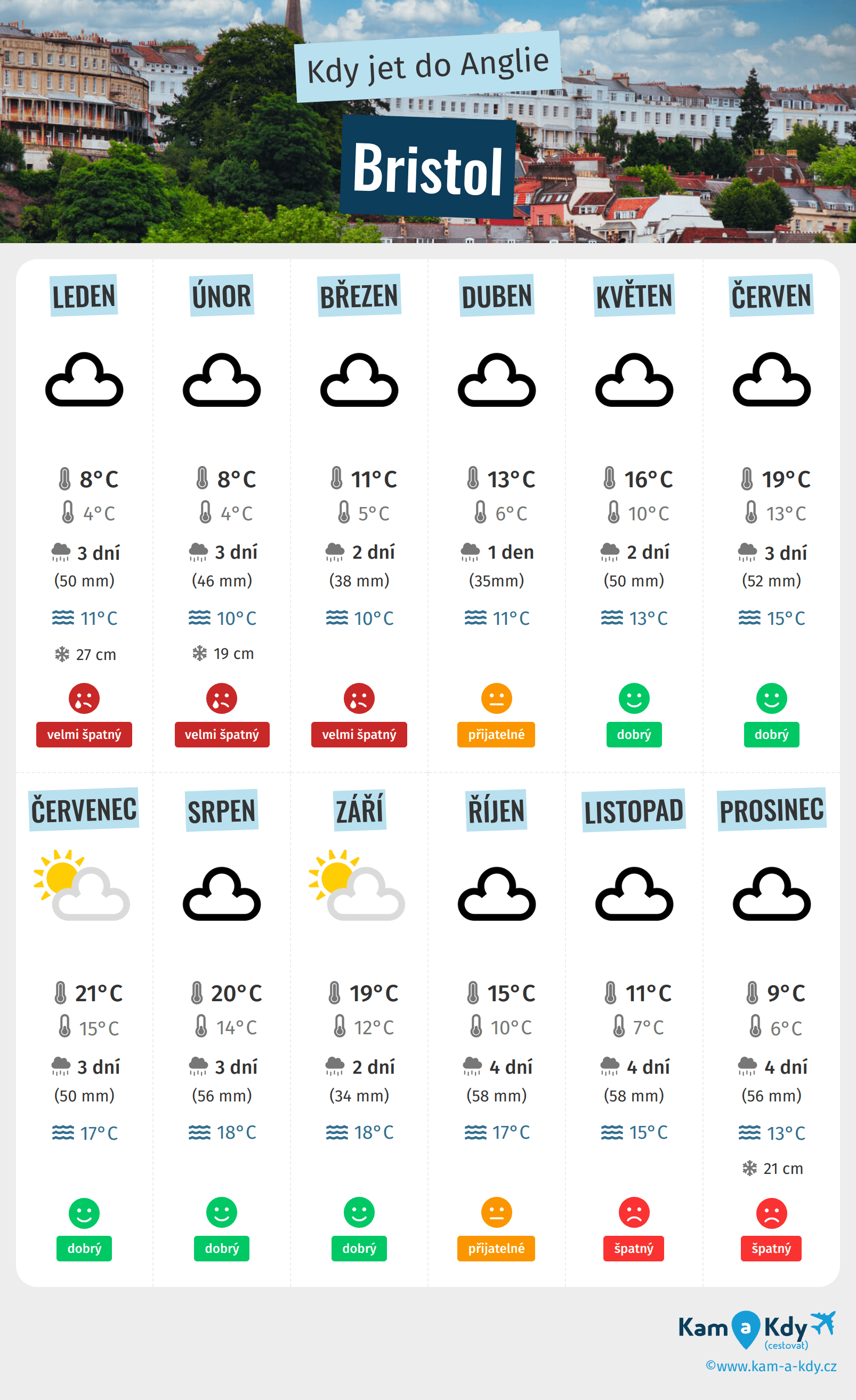 - Nejlepší měsíce pro dobré počasí v Bristol jsou Květen, červen, červenec, Srpen a Září