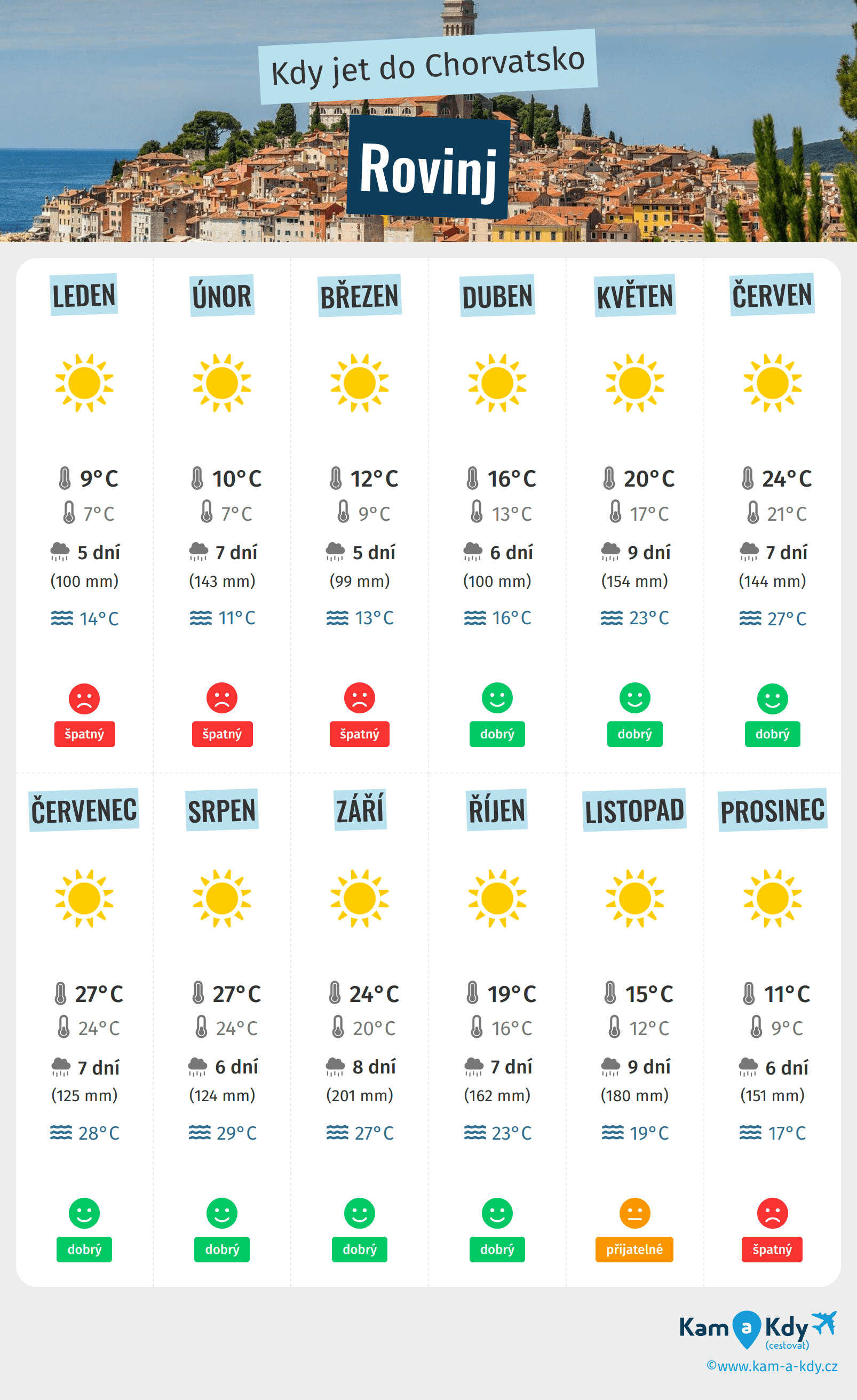 Podrobnosti o počasí v Rovinj měsíc po měsíci
