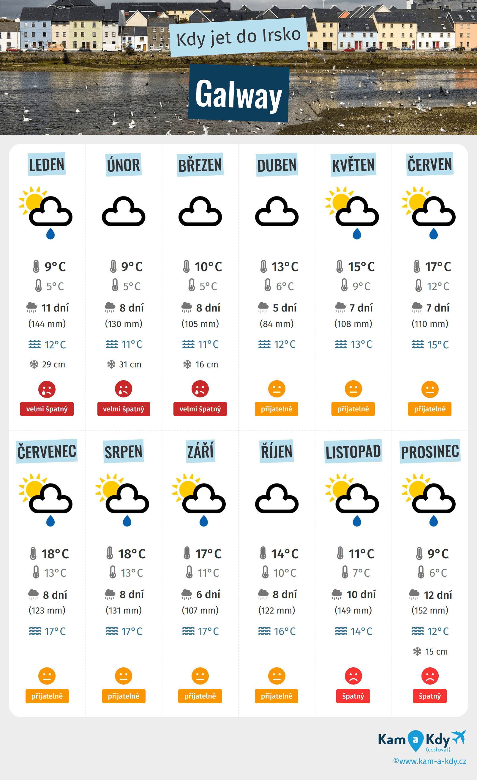 - Nejlepší měsíce v Galway jsou Duben, Květen, červen, červenec, Srpen, Září a říjen
