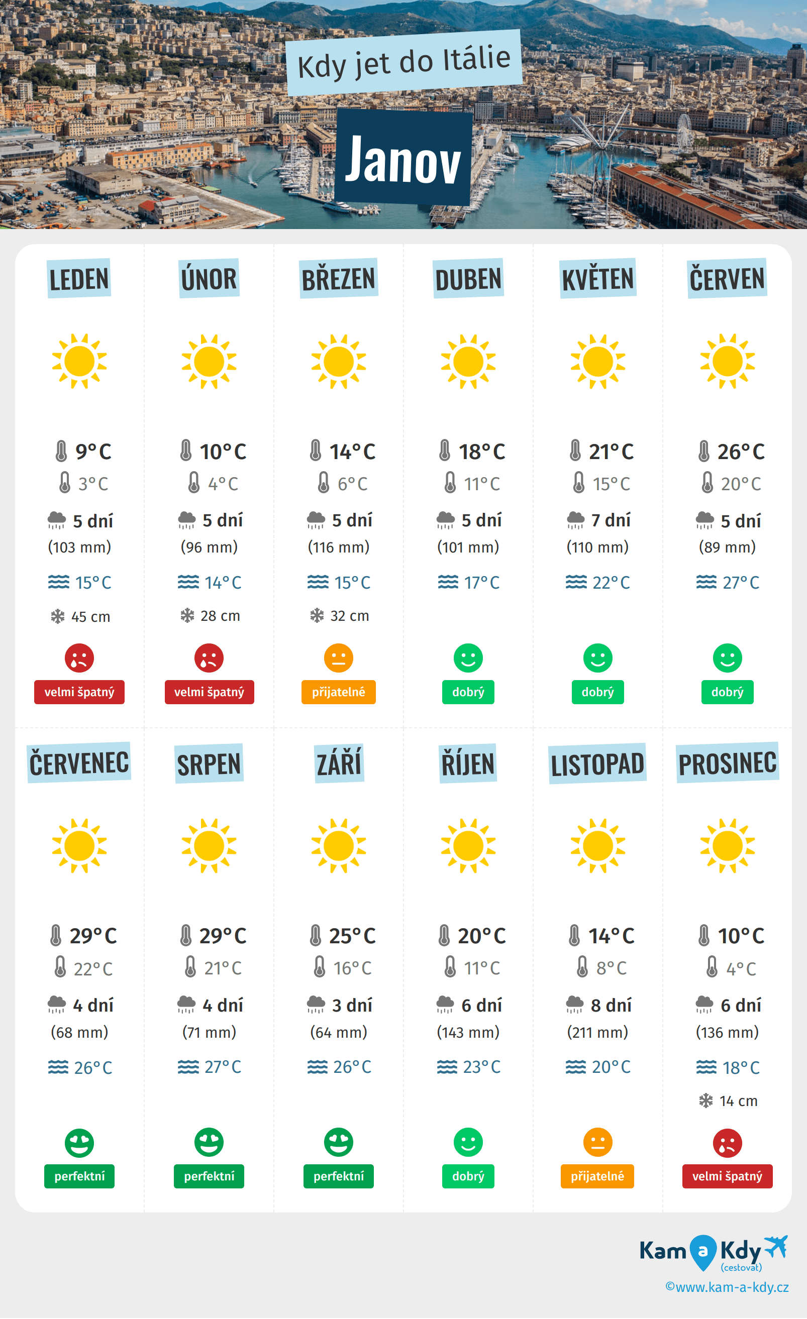 Počasí v Janově Kdy jet do Janova (Itálie) na dobré podnebí?