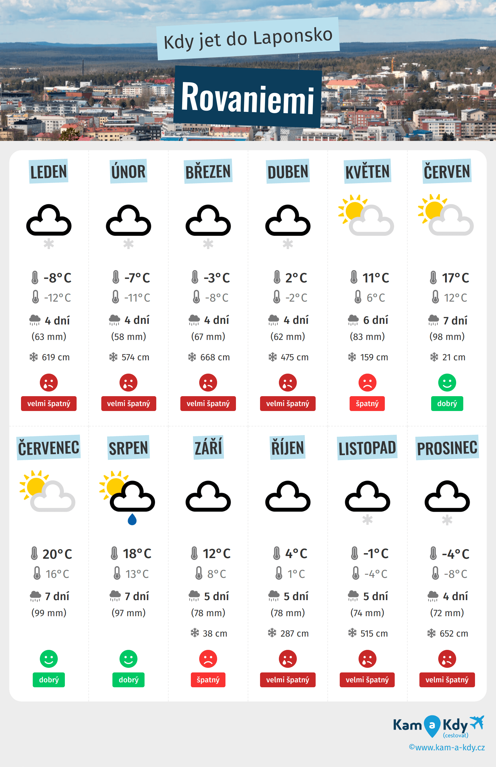 Podrobnosti o počasí v Rovaniemi měsíc po měsíci