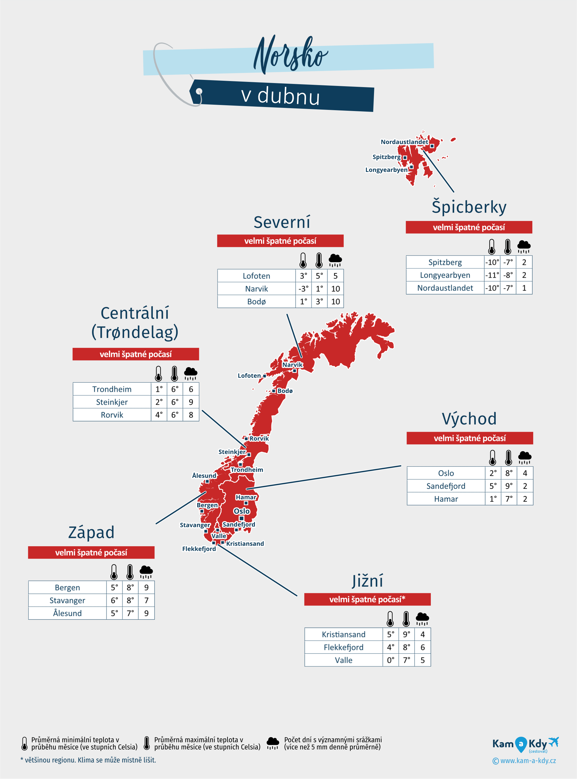 Kam jet v Norsku v dubnu podle předpovědi počasí?