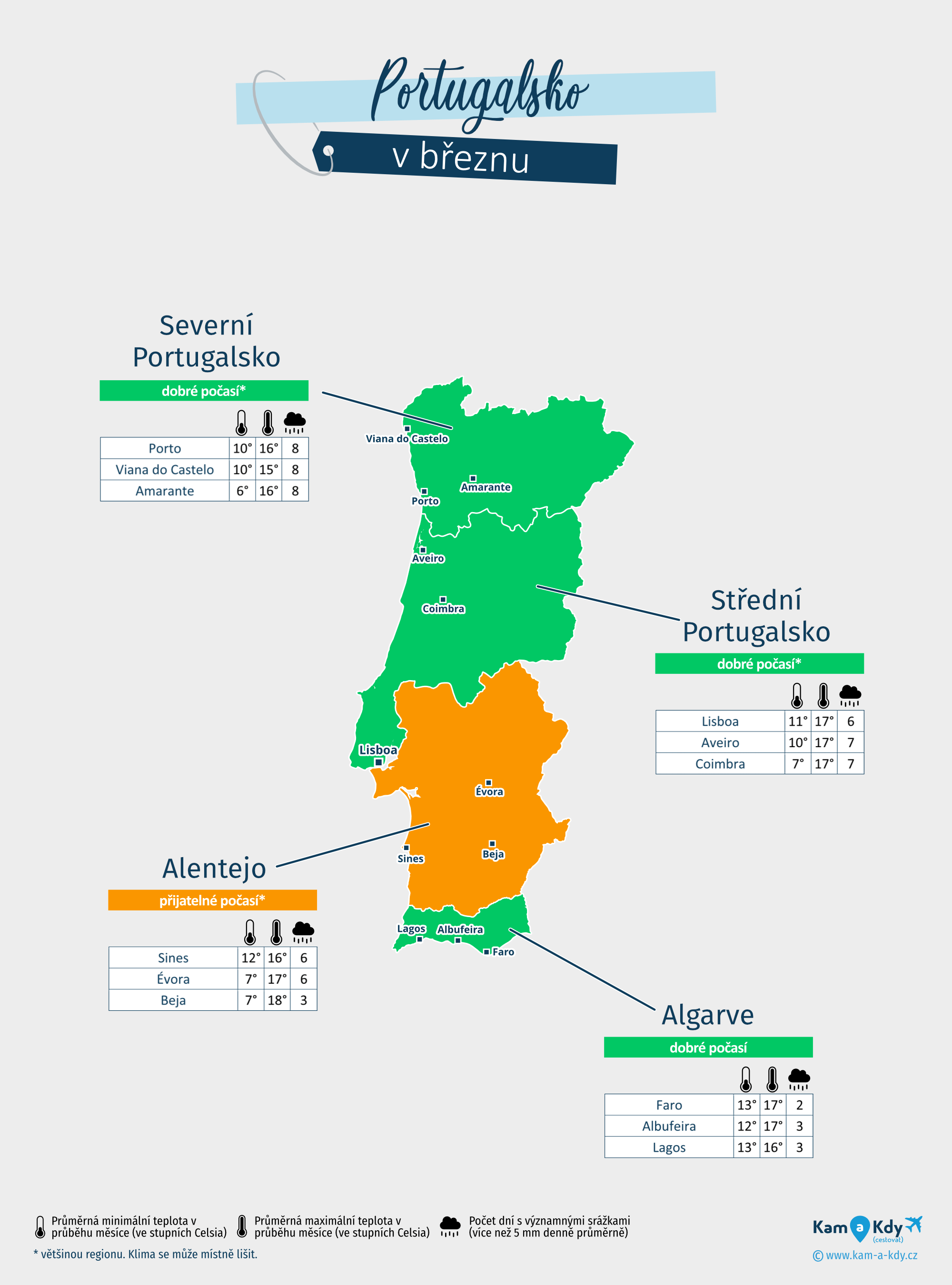 Klima v Portugalsku v březnu je dobrý až špatný v závislosti na oblasti a městu.