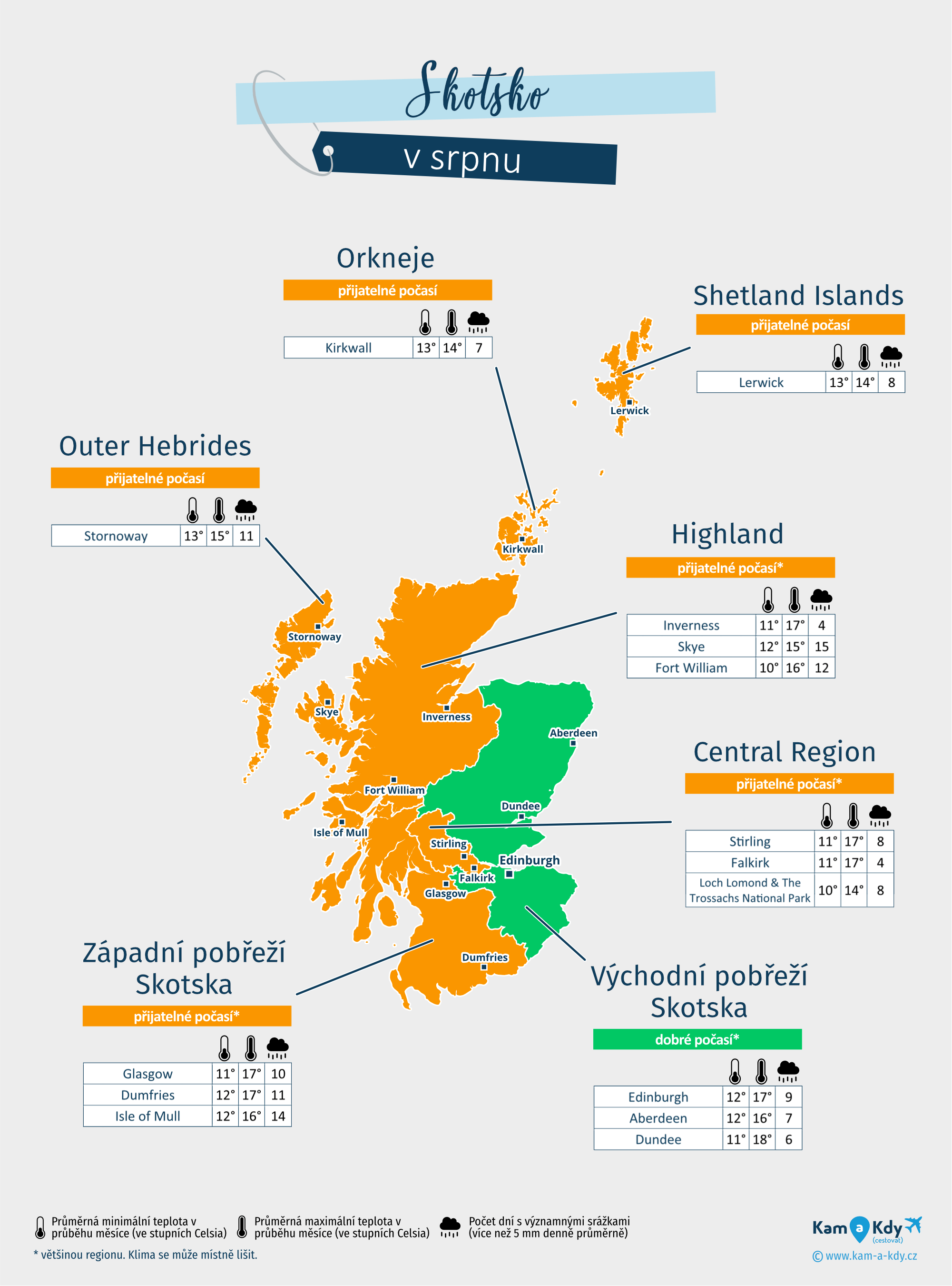 Klima ve Skotsku v srpnu je dobrý až špatný v závislosti na oblasti a městu.
