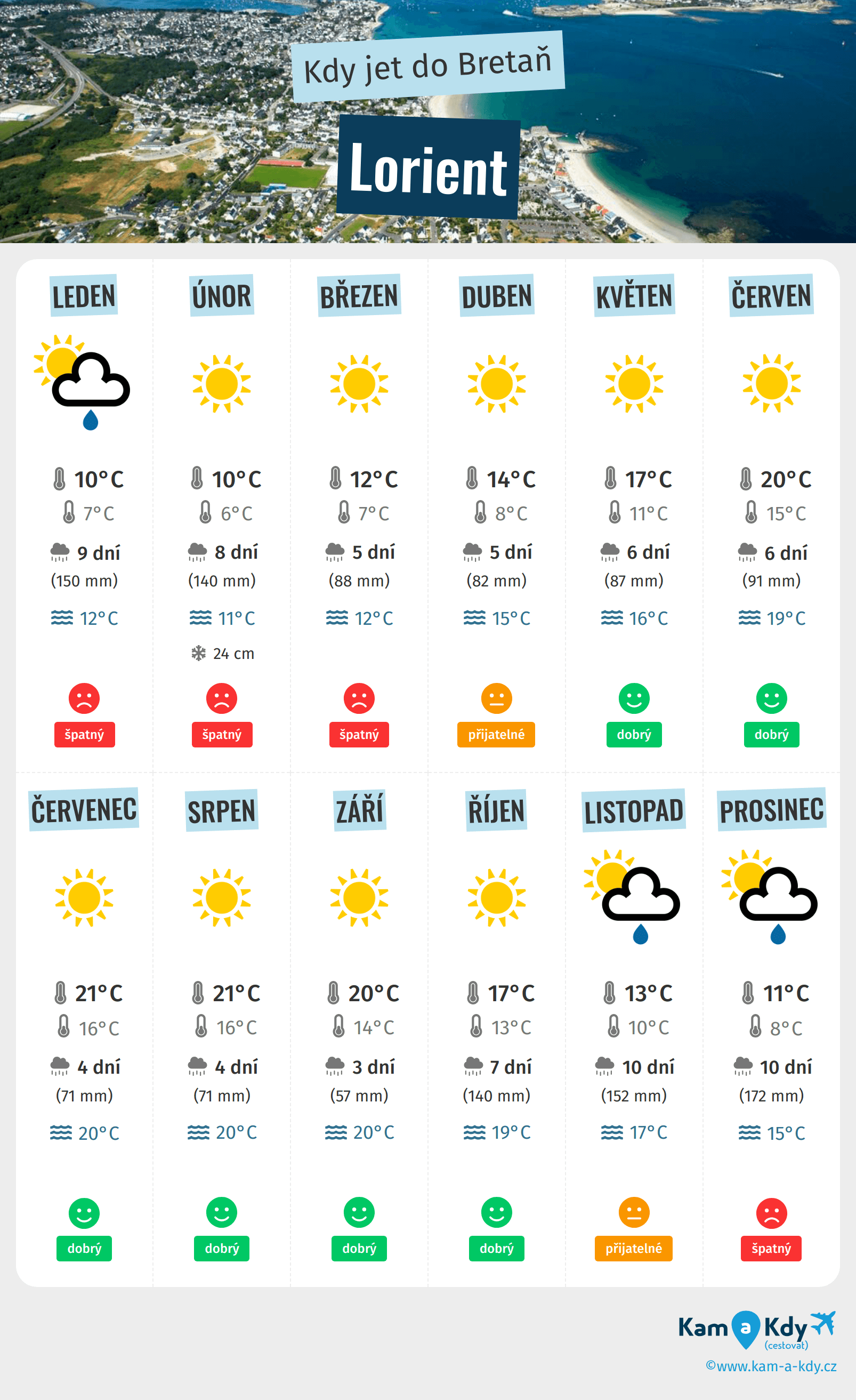 Kdy je nejlepší časpro cestu do Lorient? Zde je několik informací, které vám pomohou při rozhodování:
