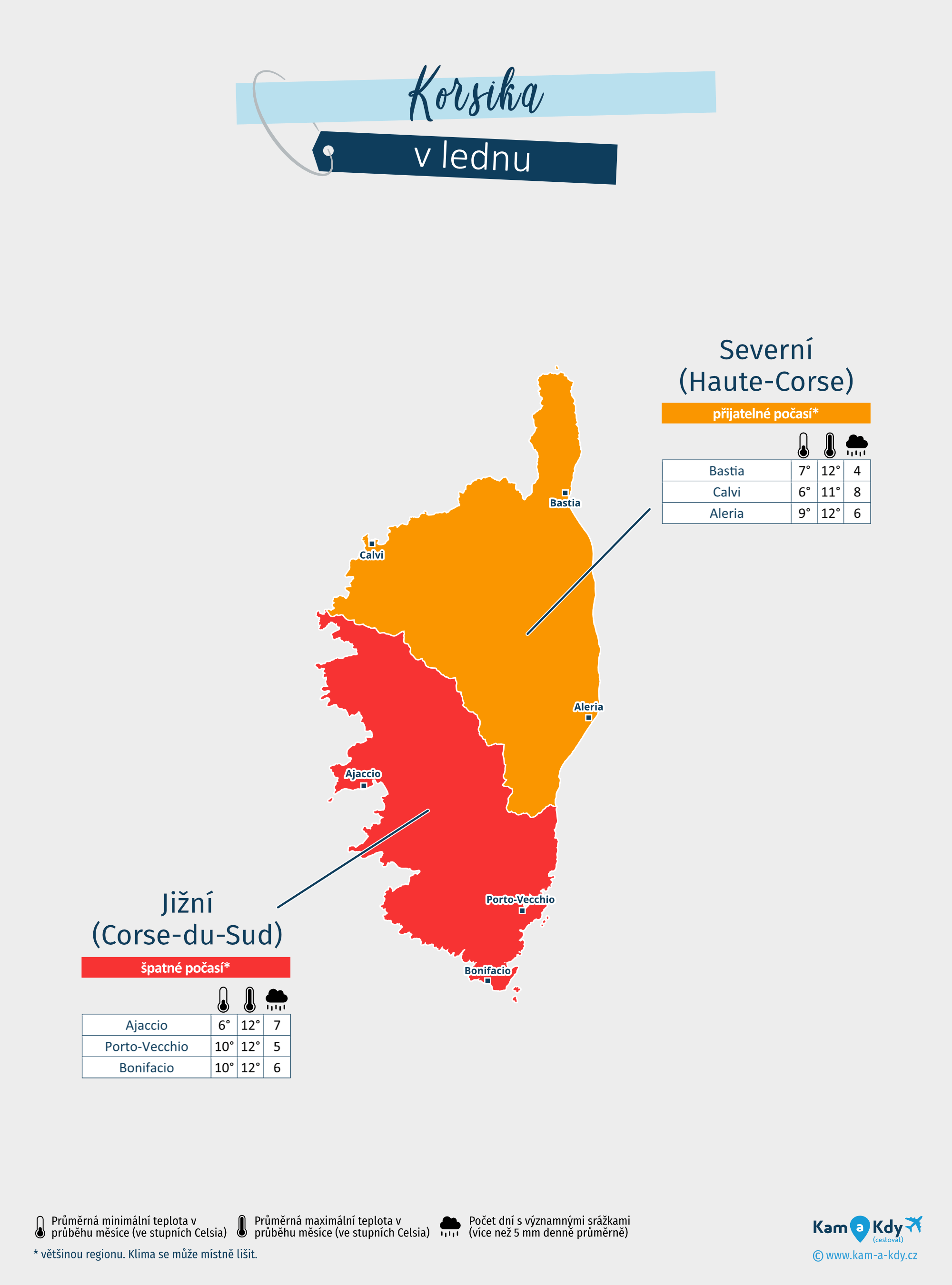 Kam jet na Korsice v lednu podle předpovědi počasí?