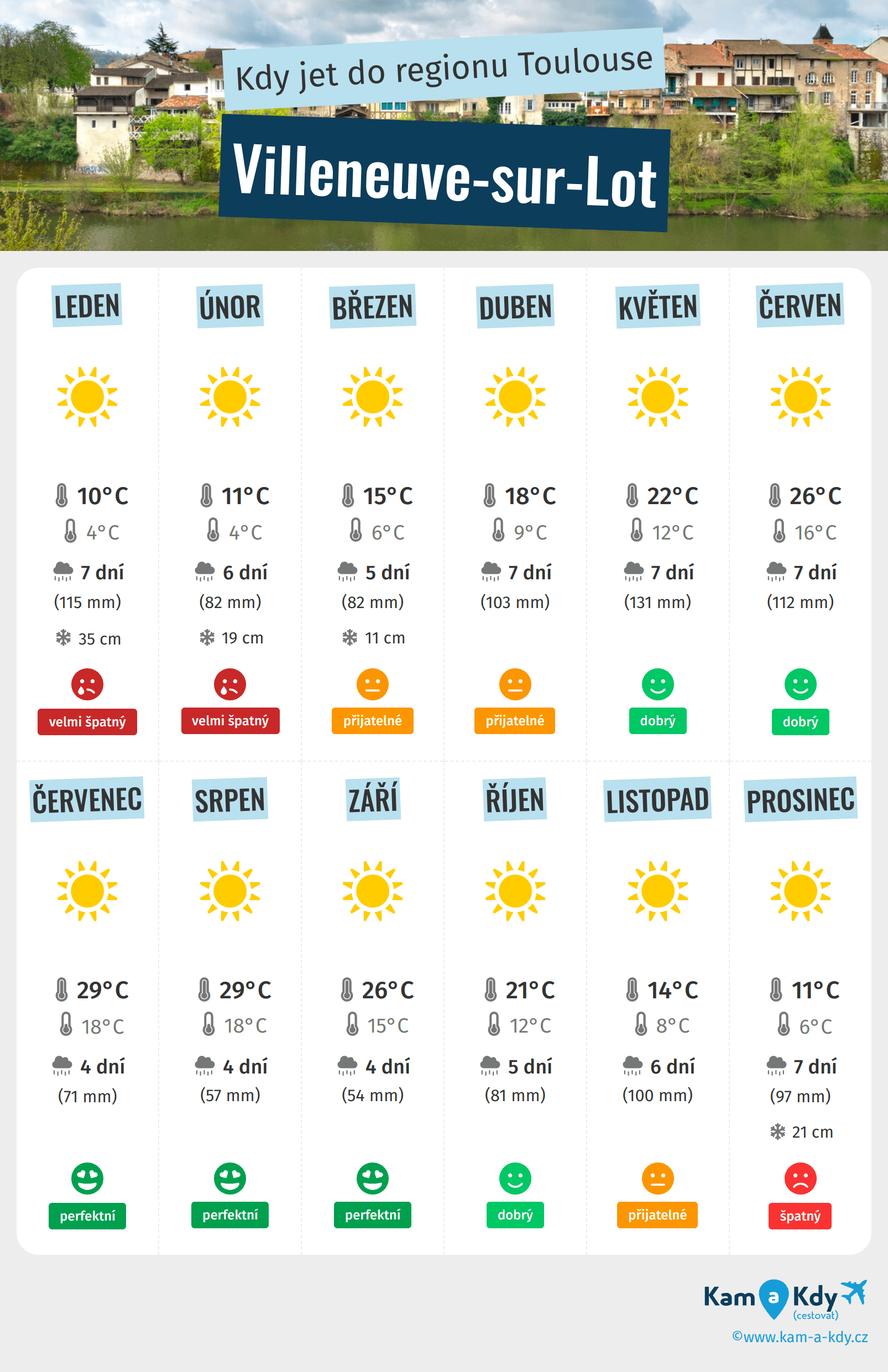 Počasí v Villeneuve-sur-Lot Kdy jet do Villeneuve-sur-Lot (Region Toulouse) na dobré podnebí?