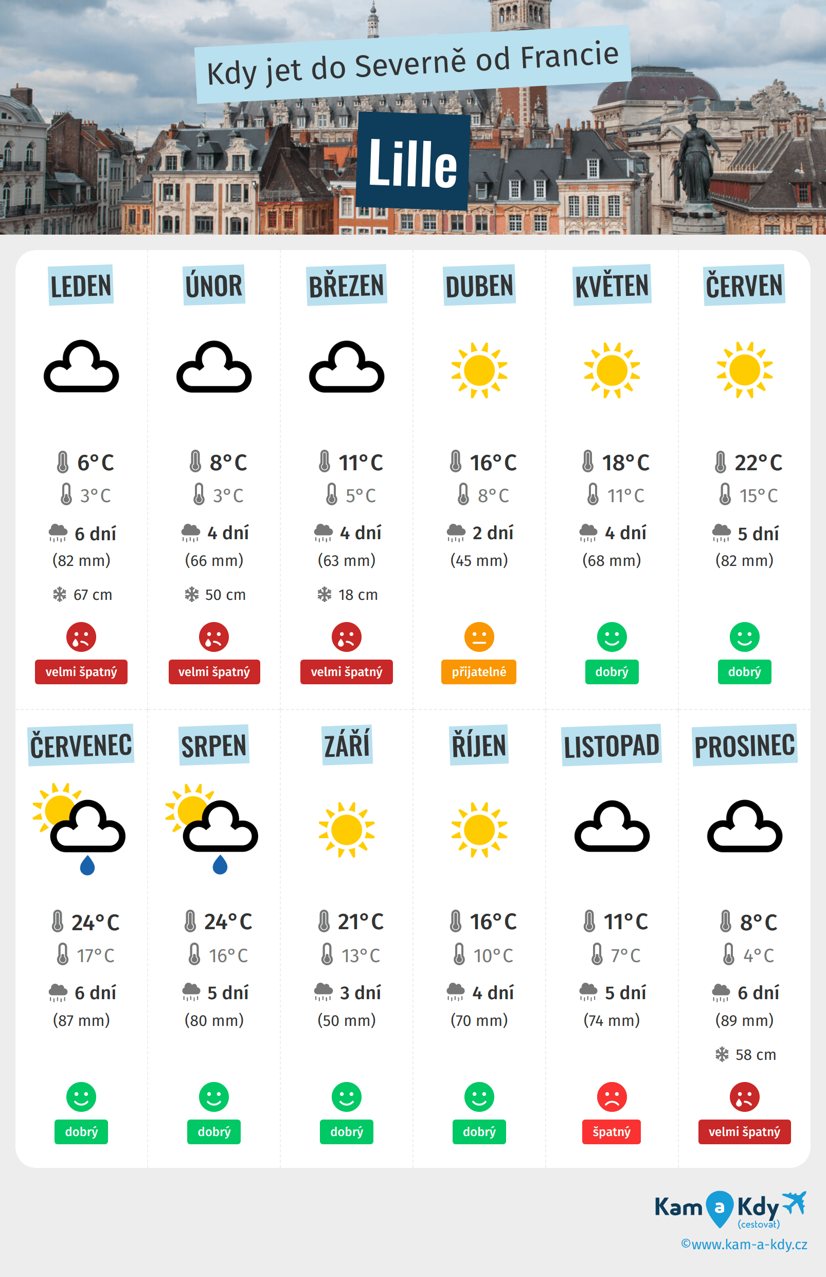 Počasí v Lille Kdy jet do Lille (Severně od Francie) na dobré podnebí?