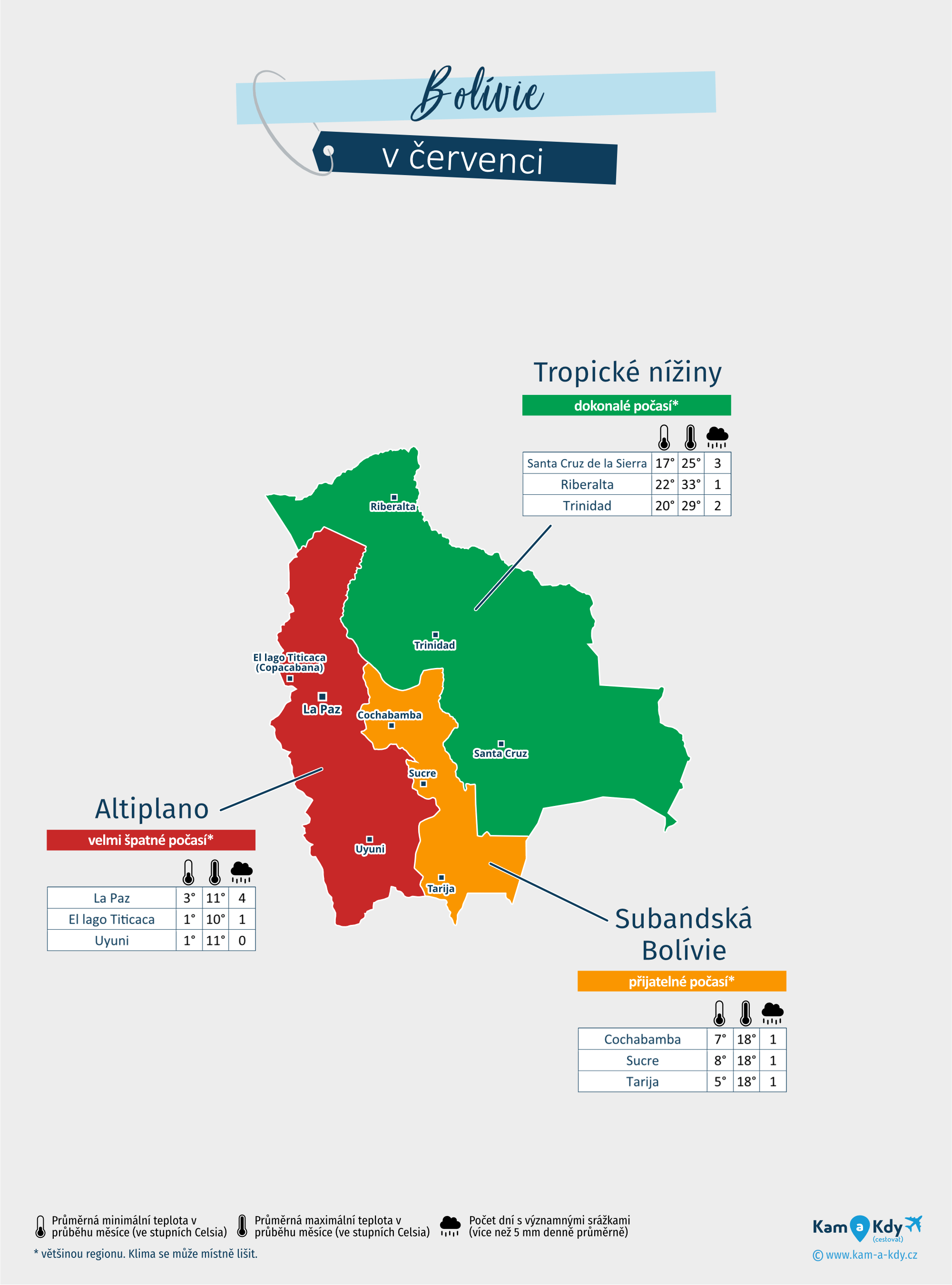 Kam jet v Bolívii v červenci podle předpovědi počasí?