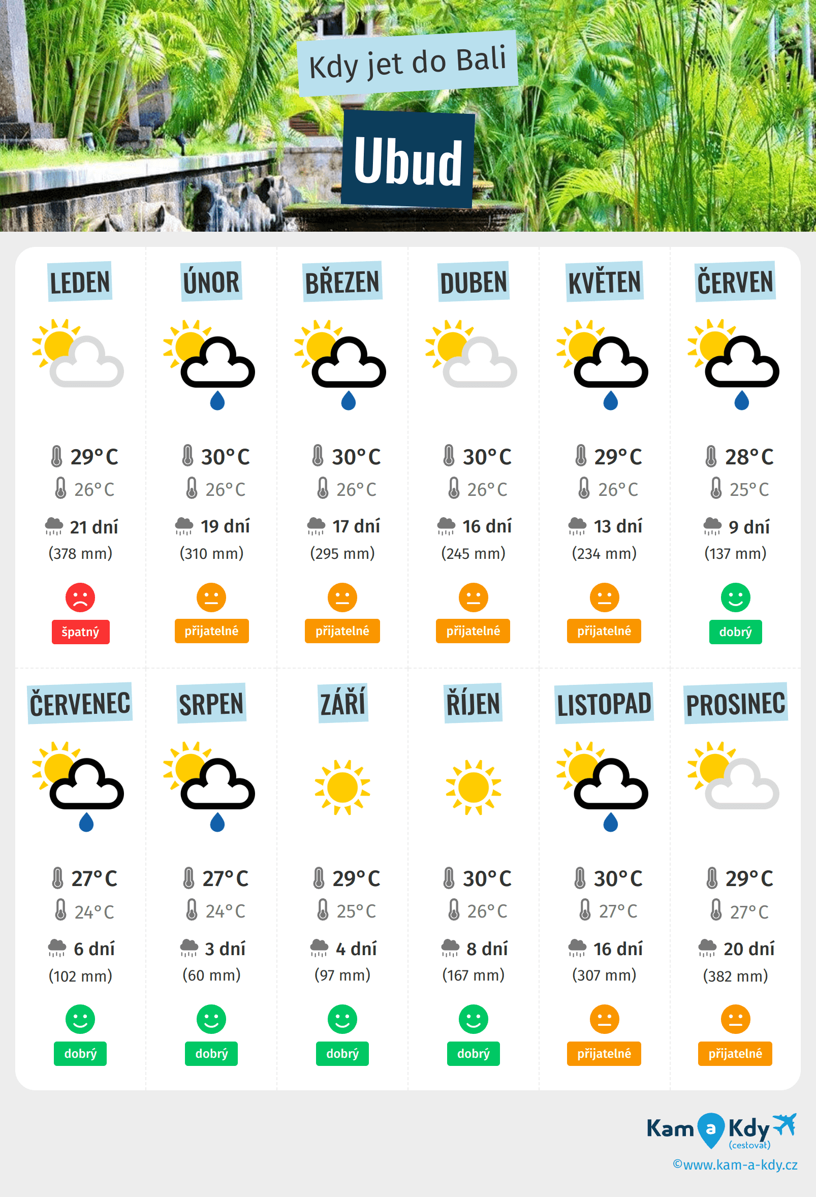 Podrobnosti o počasí v Ubud měsíc po měsíci