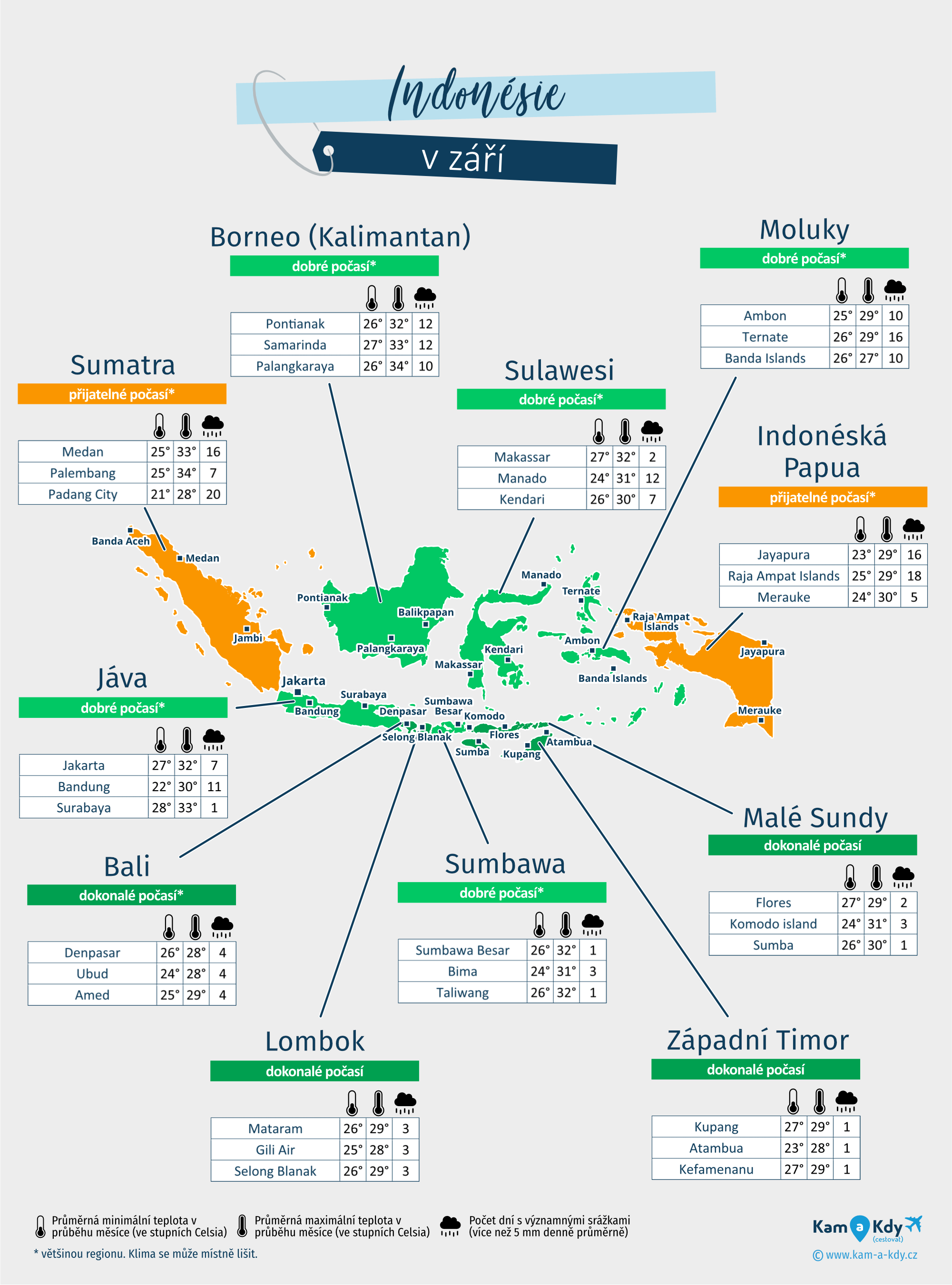 Kam jet v Indonésii v září podle předpovědi počasí?