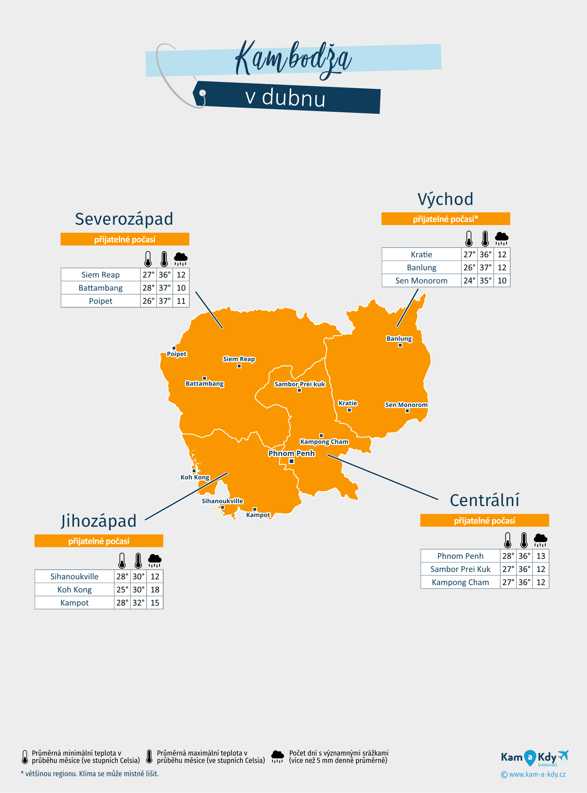| Provincie Kampong Cham v dubnu | přijatelné počasí |
