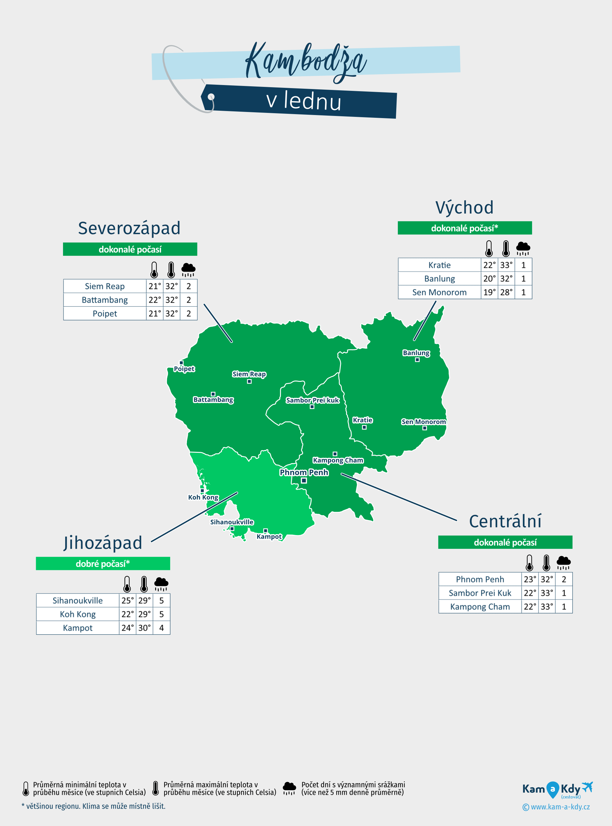 | Provincie Kampong Cham v lednu | dokonalé počasí |