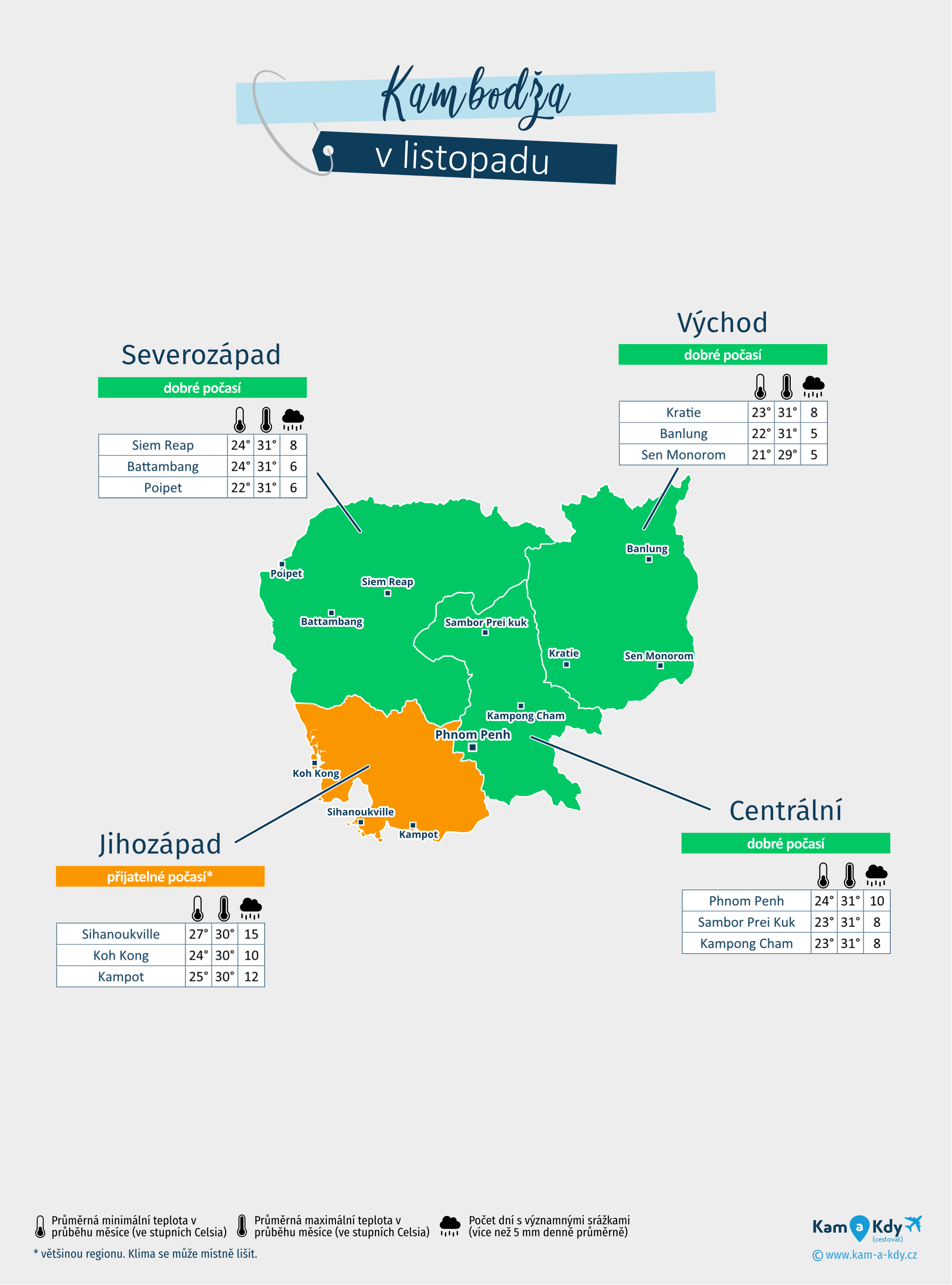 Kam jet v Kambodži v listopadu podle předpovědi počasí?