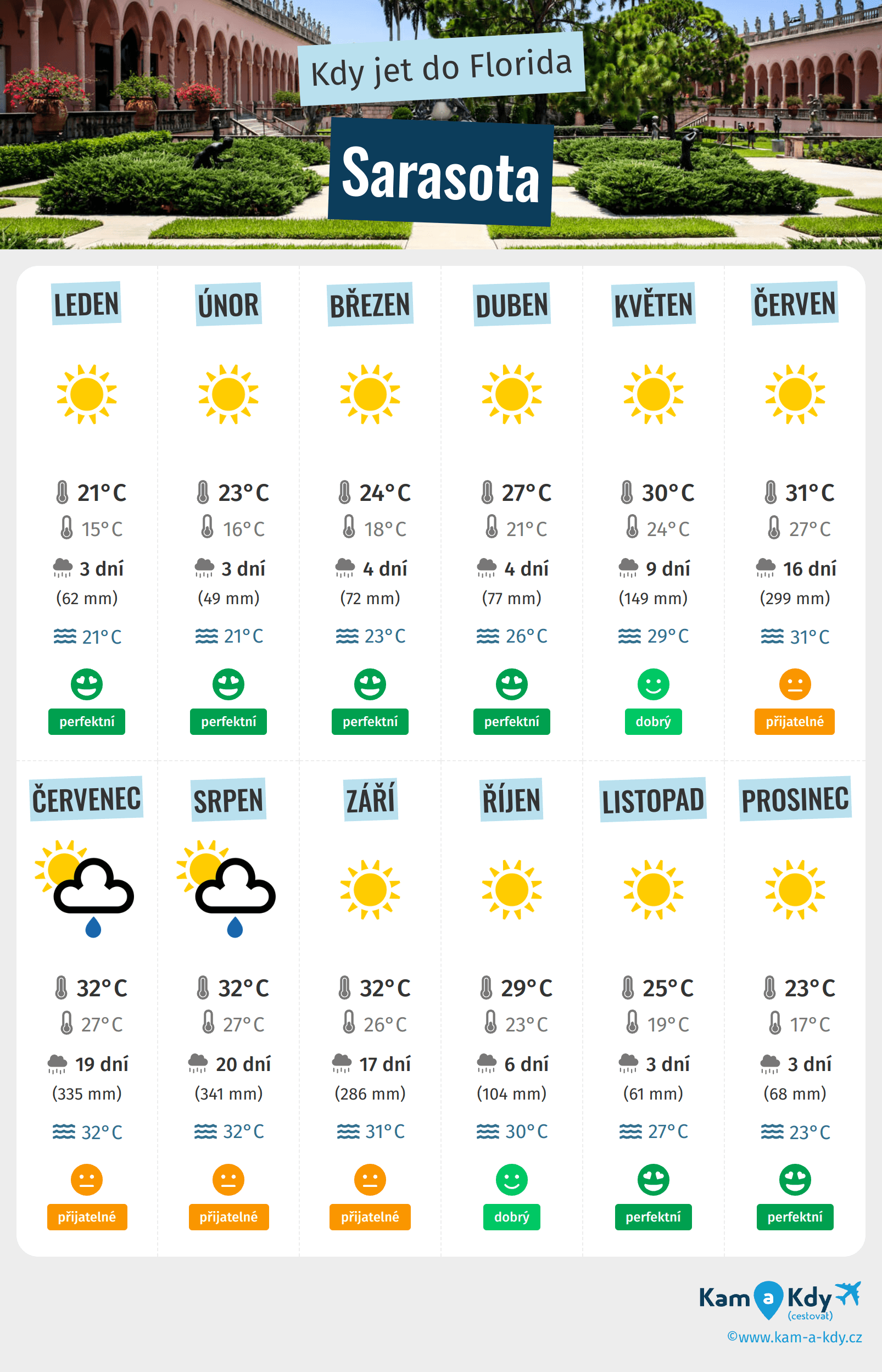 Počasí v Sarasota Kdy jet do Sarasota (Florida) na dobré podnebí?