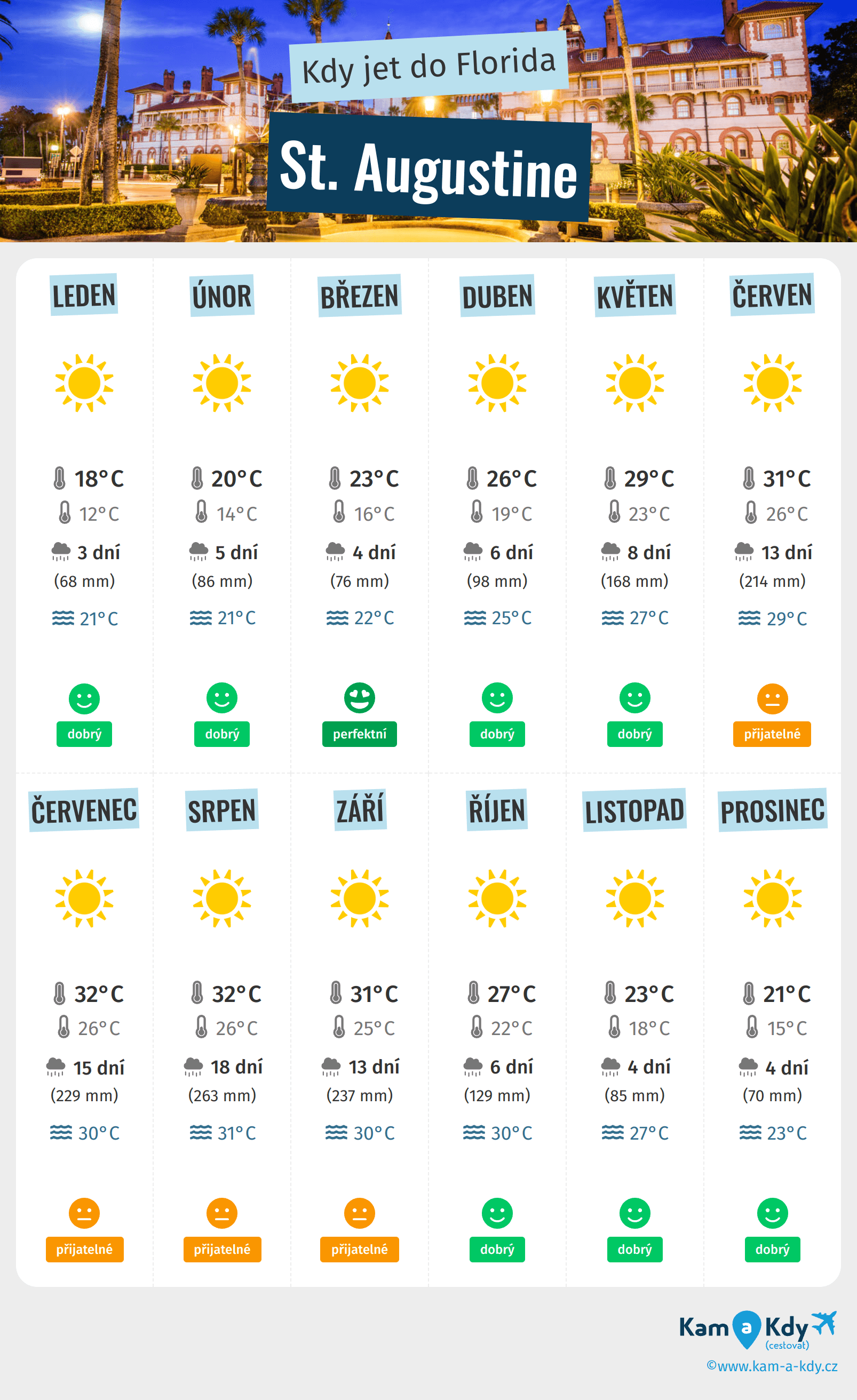 Chcete-li získat všechny informace o podnebí a počasí v St. Augustine pro konkrétní měsíc, klikněte na příslušný odkaz níže: