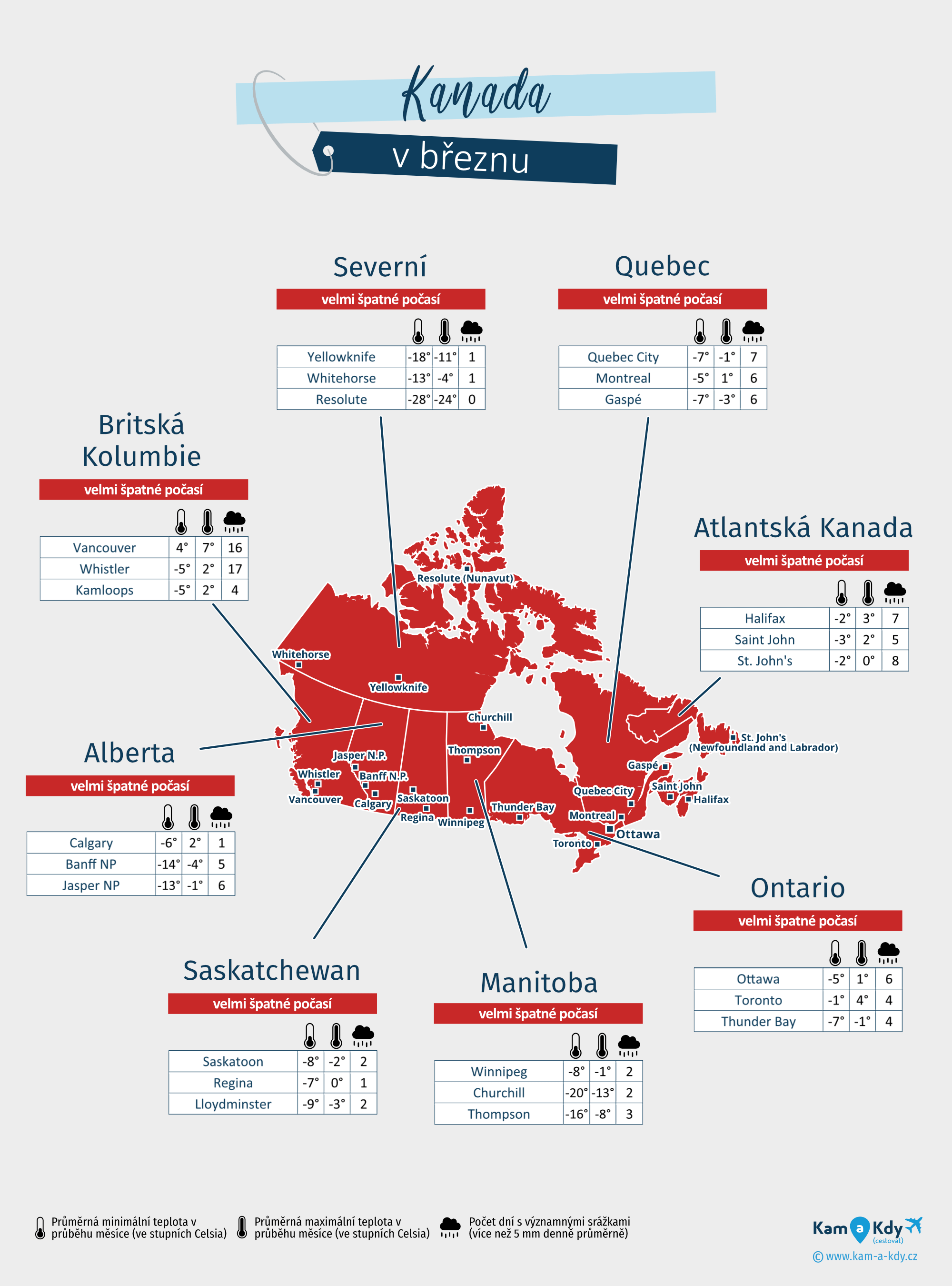 Kam jet v Kanadě v březnu podle předpovědi počasí?