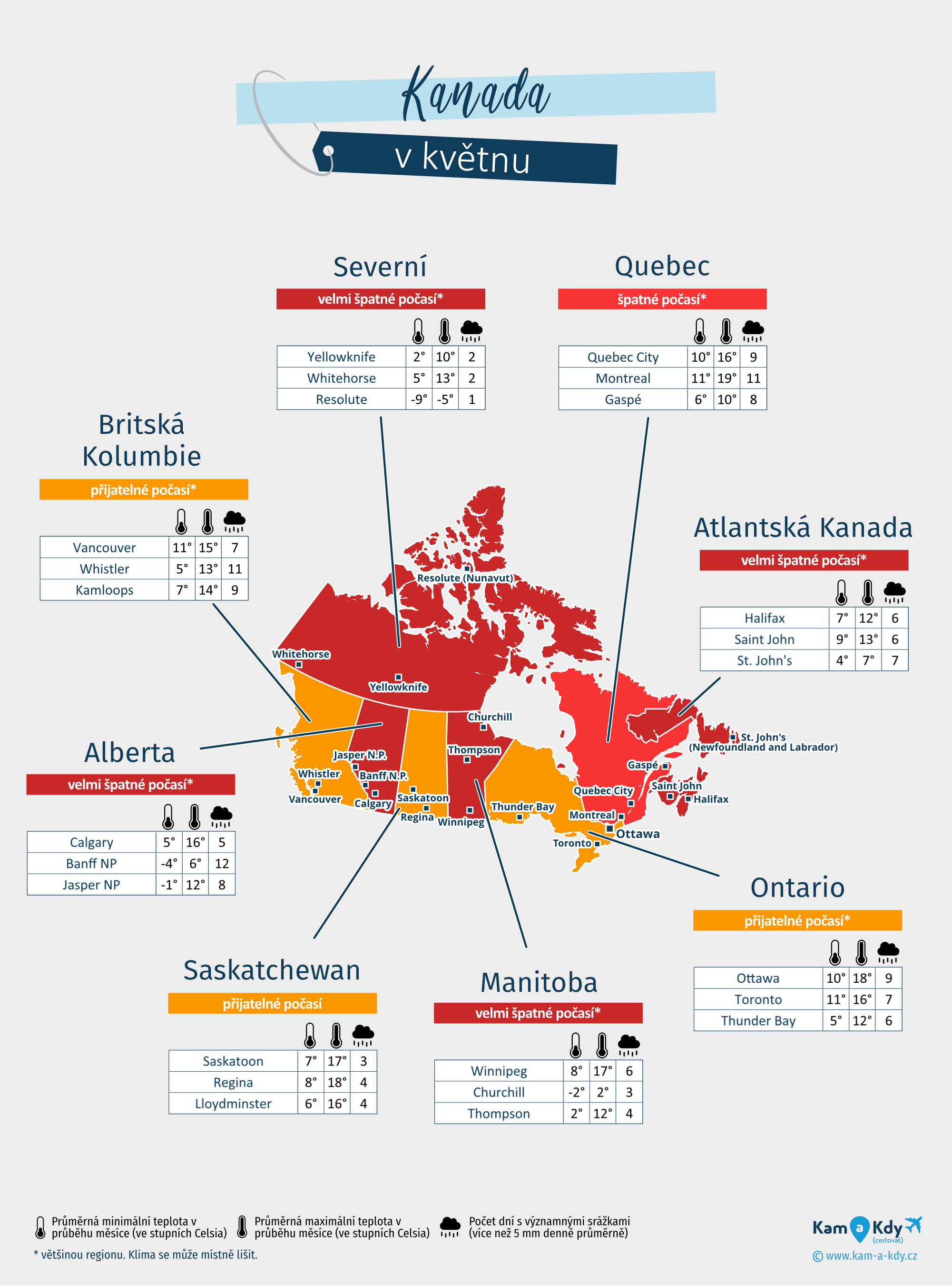 Kam jet v Kanadě v květnu podle předpovědi počasí?