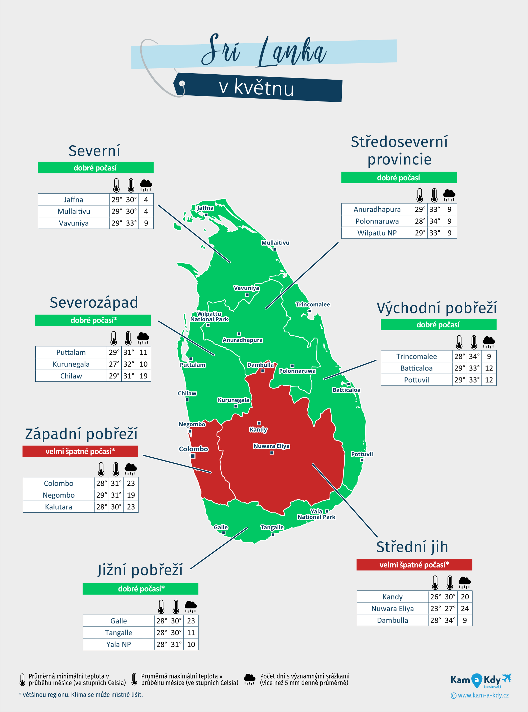 Klima na Srí Lance v květnu je dobrý až velmi špatný v závislosti na oblasti a městu.