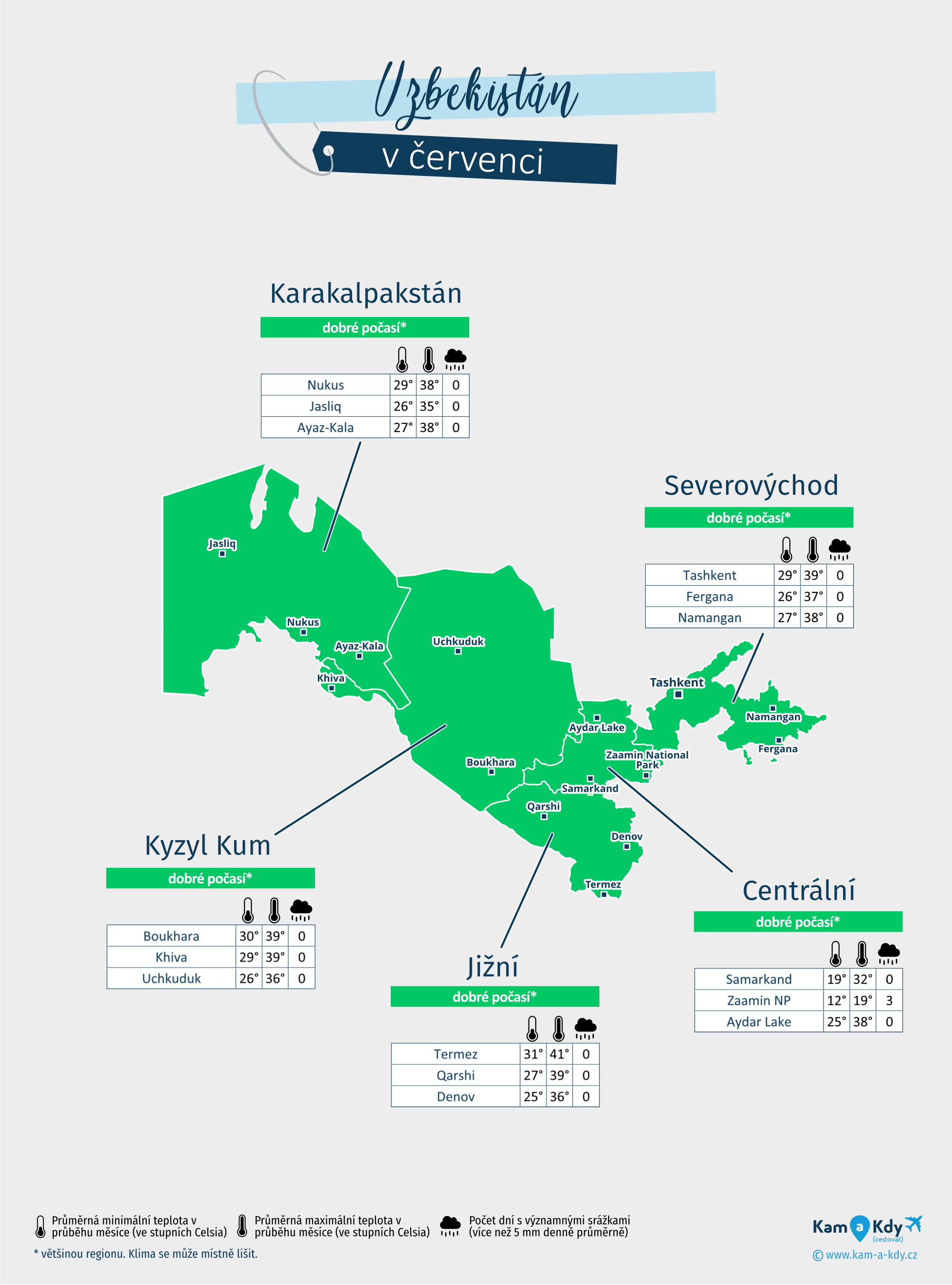 Kam jet v Uzbekistánu v červenci podle předpovědi počasí?