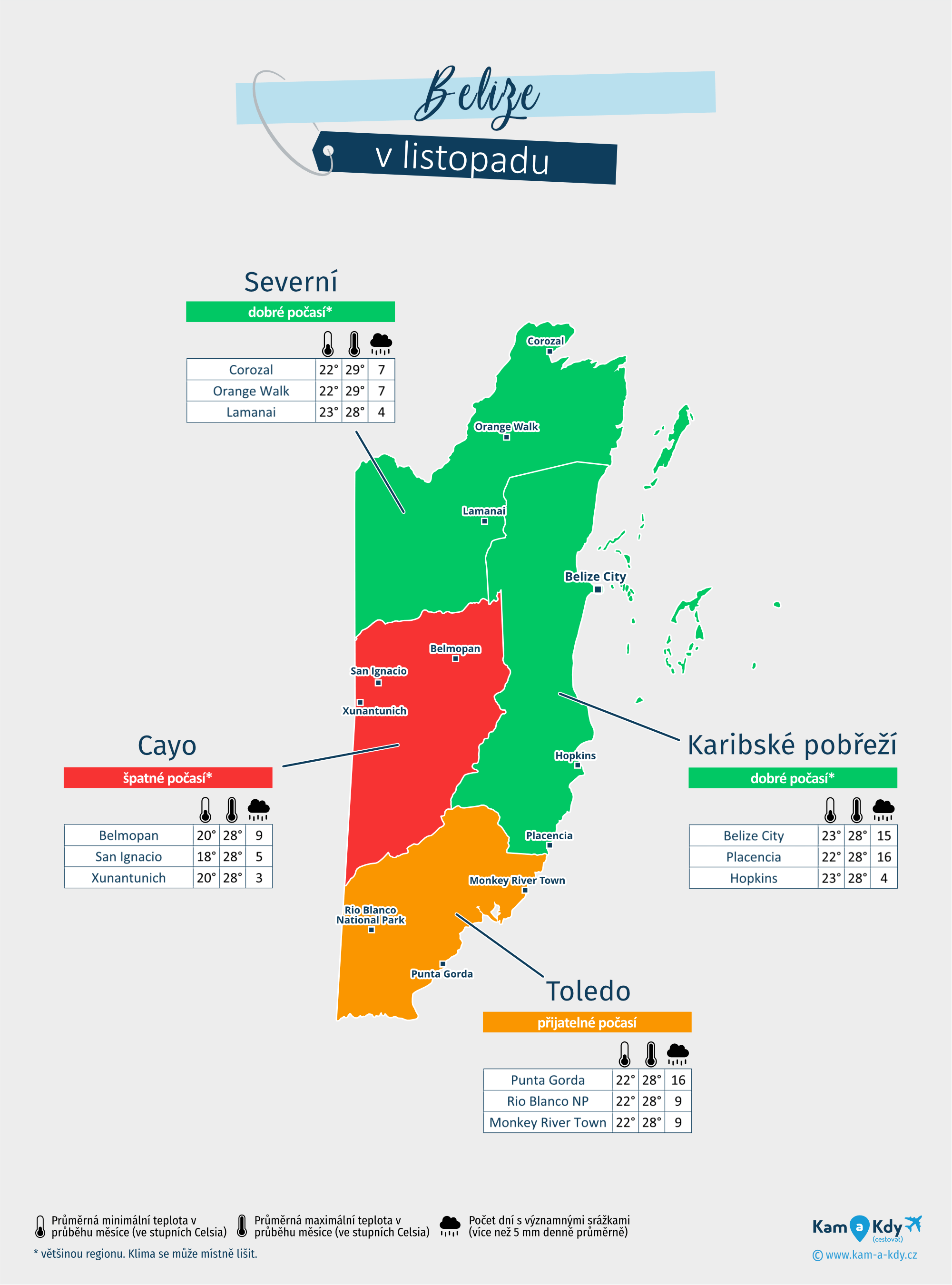 Kam jet v Belize v listopadu podle předpovědi počasí?