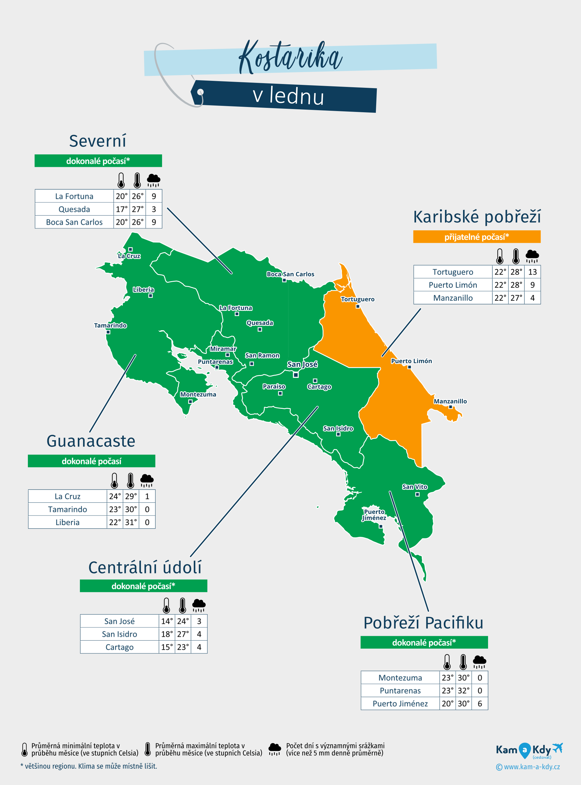 Kam jet v Kostarice v lednu podle předpovědi počasí?