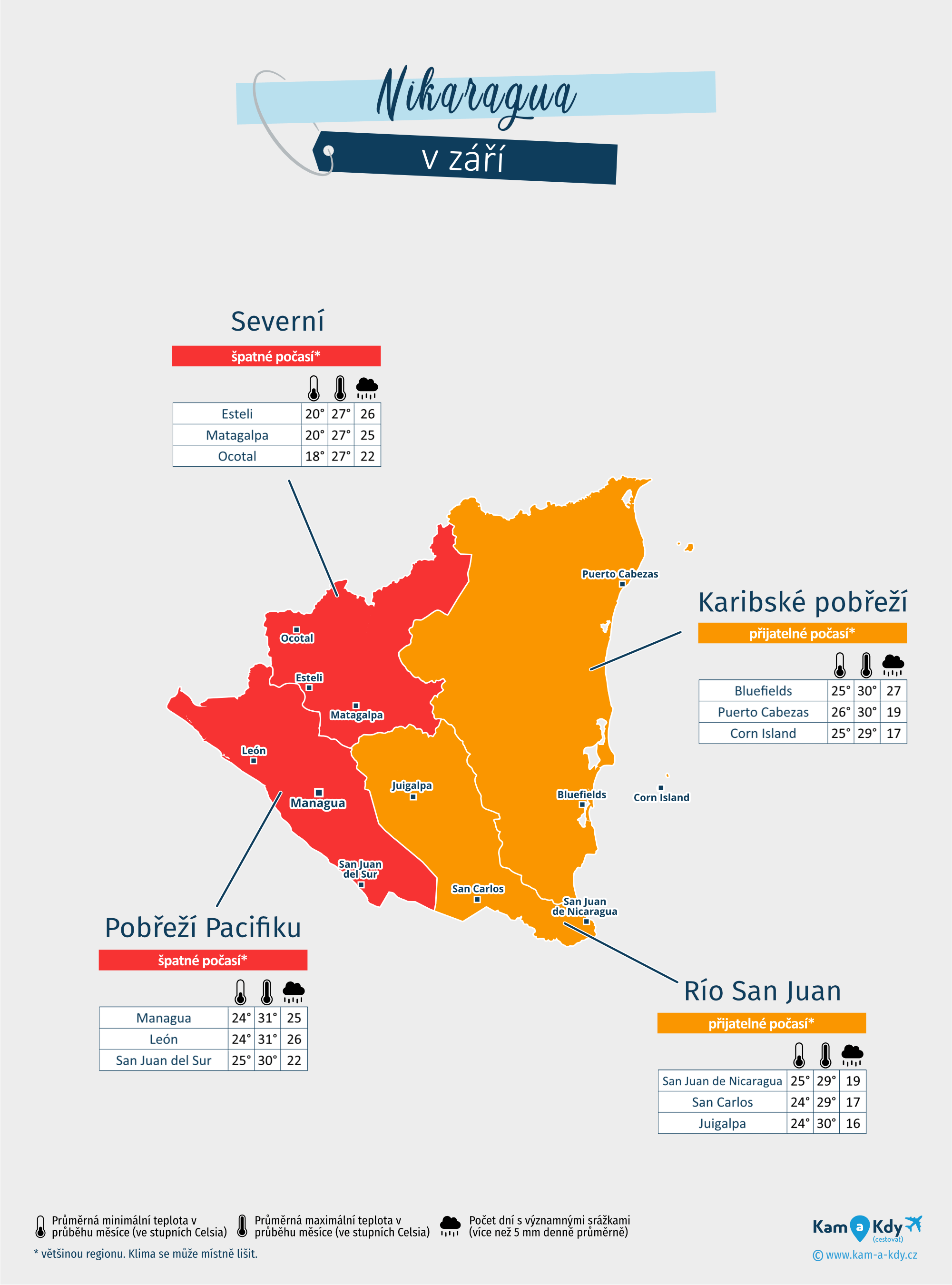 Kam jet v Nikaragui v září podle předpovědi počasí?