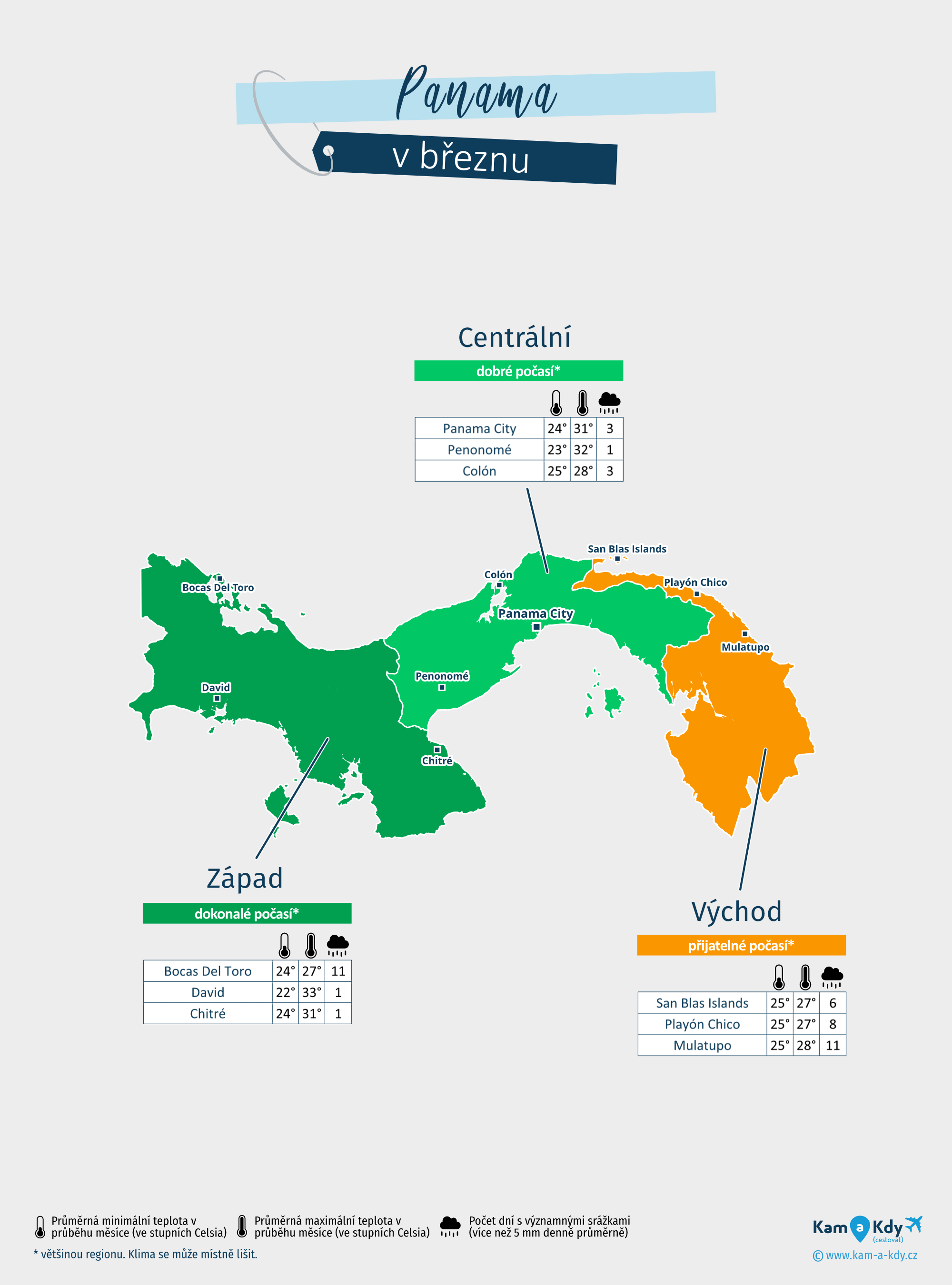 Kam jet v Panamě v březnu podle předpovědi počasí?