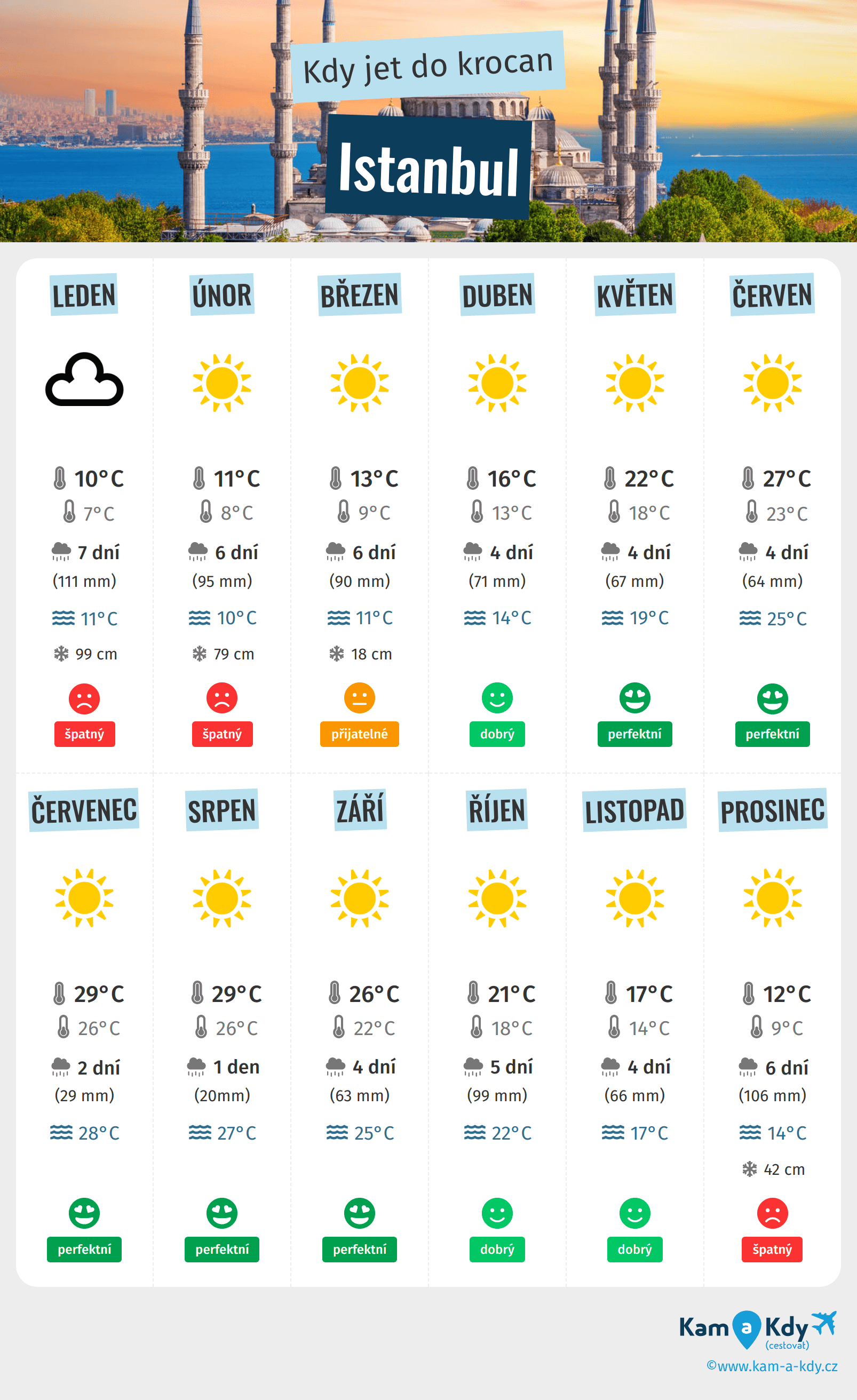 Podrobnosti o počasí v Istanbulu měsíc po měsíci