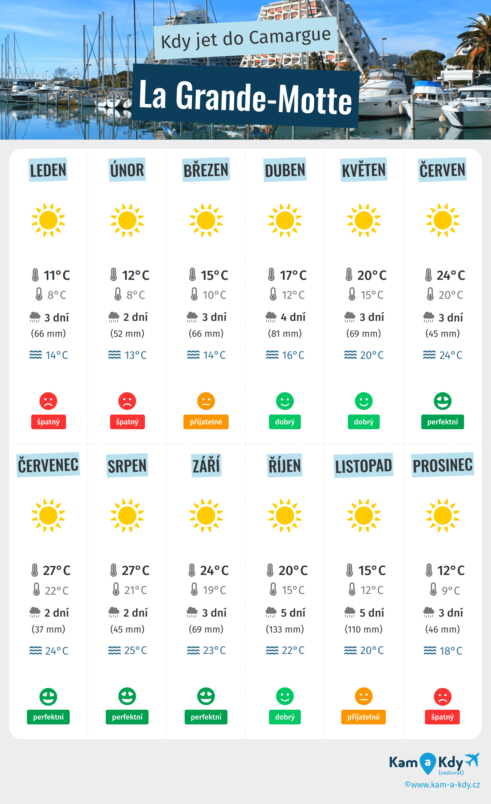 Počasí v La Grande-Motte Kdy jet do La Grande-Motte (Camargue) na dobré podnebí?