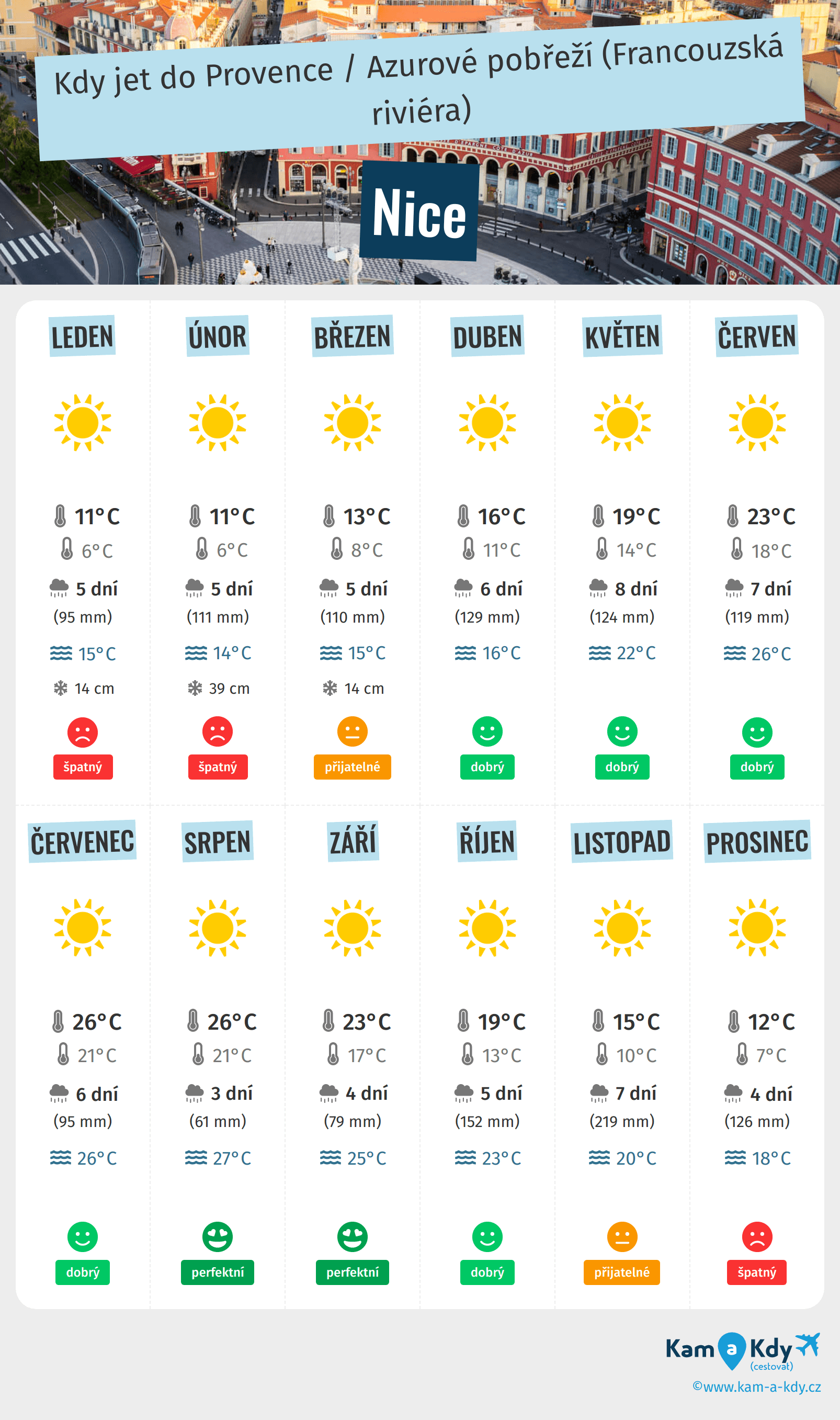Takže, kdy je nejlepší čas pro cestu do Nice? Zde je několik dalších informací, které vám pomohou při rozhodování: