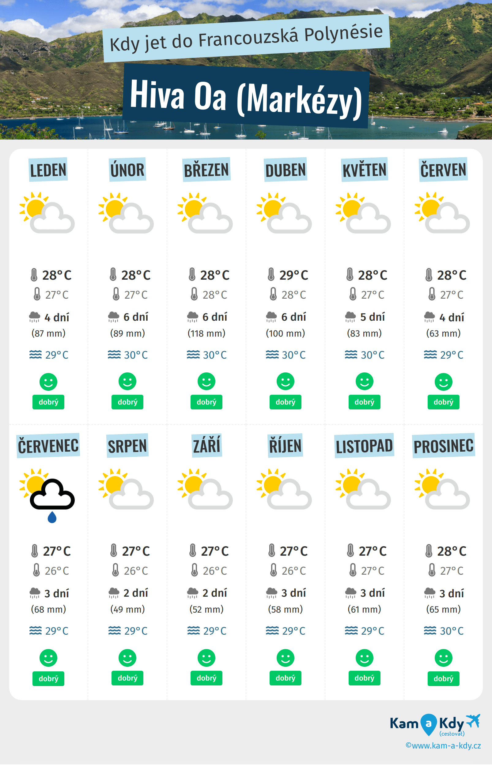 - Počasí je dobré po celý rok v Hiva Oa (Markézy)
